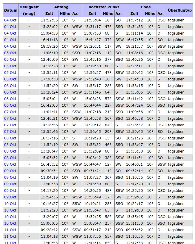 Überflugzeiten der ISS über Ostfriesland / Emsland / Ammerland